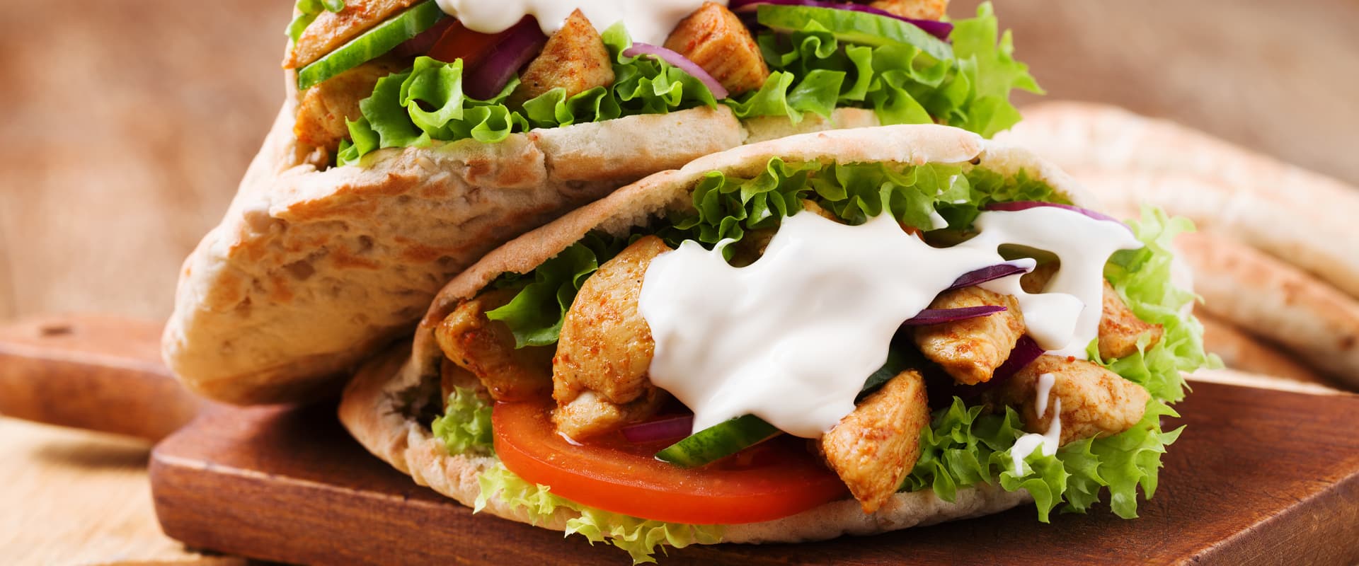 2. نأخذ الخبز ونضع الخس الطازج ونملأه بخليط الدجاج المطبوخ وشرائح البصل والزبادي بالثوم.