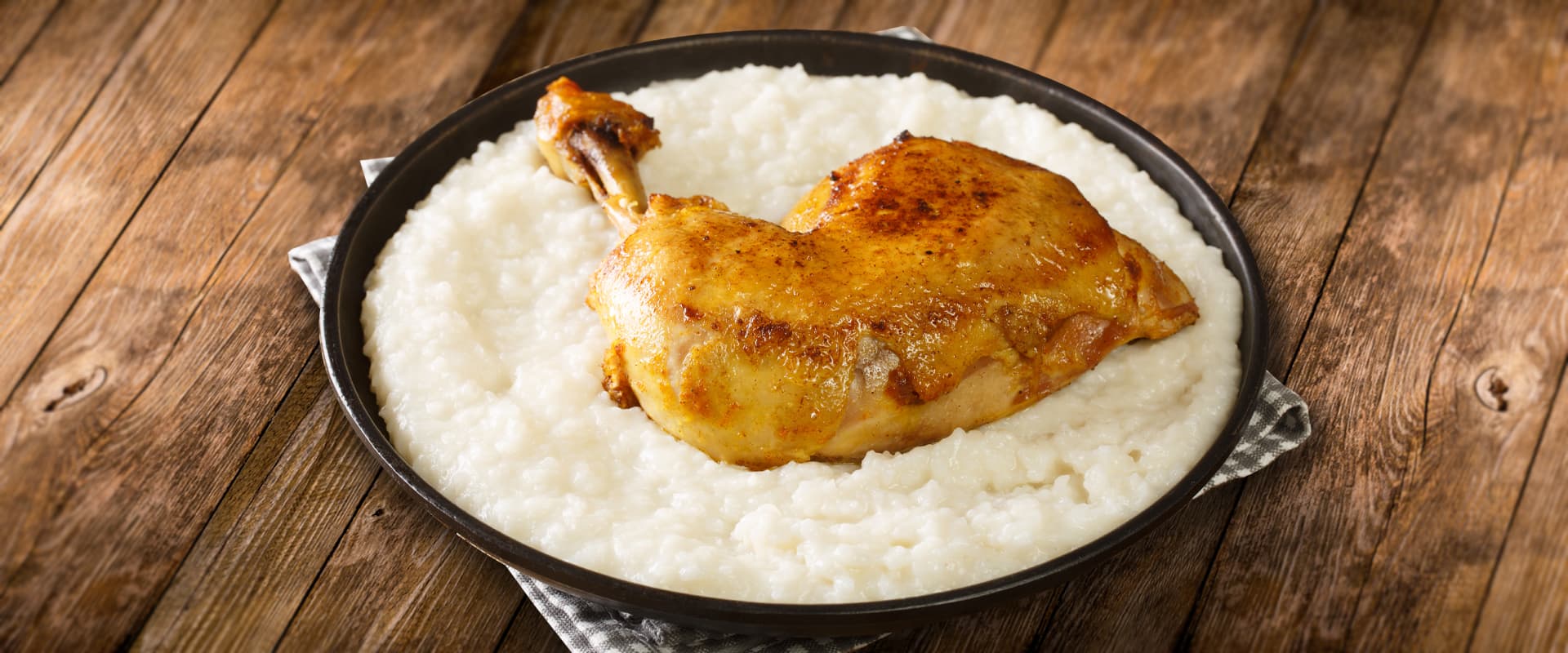 7. انقلي الأرز إلى طبق التقديم ورتبي قطع الدجاج فوقه وقدميه ساخنا.